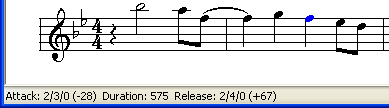 For example, this is what the status bar looks like if the highlighted third quarter note in the second measure above is clicked: