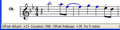 Composer will display the offsets of the as-performed from the as-notated attack and release, as illustrated below: