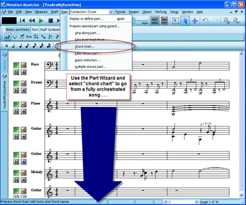 • The "Part Wizard" helps you create your chord chart just the way you want it.